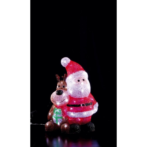 Figura luminosa mod. Babbo Natale con renna 60 LED da interno/esterno-bianco-cm. 30 x 14 x h. cm. 38