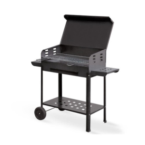 struttura in acciaio verniciato 1,2 mm. 2 griglie in acciaio cromato, regolabili in tre posizioni. 2 ripiani laterali smontabili. Cassetto raccoglicenere estraibile. Con coperchio. Griglia di cottura 57,5x37 cm. Dimensioni 60x40xh90 cm. Peso 27,8 kg.