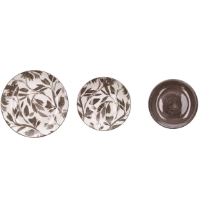 Servizio piatti in porcellana "Zaira" 18 pz--tortora--piano: diam. cm. 27 / fondo: diam. cm. 20 / frutta: diam. cm. 19