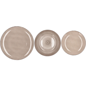 Servizio piatti in porcellana 18 pz--beige--piano: diam. cm. 26,5 / fondo: diam. cm. 20,5 / frutta: diam. cm. 19