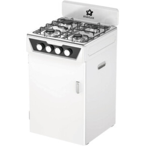 Fornello a gas 4 fuochi M-POKER - G Staylux in metallo con vano porta bombola. Per uso interno ed esterno. Dimensioni 48,5x45,0xh65,0 cm. Colore bianco