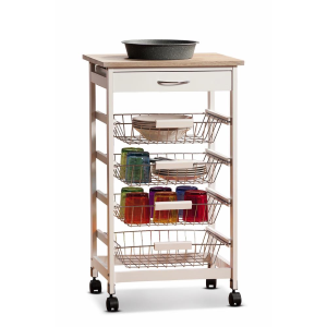 Carrello in mdf e pvc con 1 cassetto e 4 cestini bianco