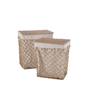 Set 2 portabiancheria rettangolari in paglia di grano con interno in tessuto--naturale--cm. 40 x 30 x h. cm. 46 / cm. 45 x 35 x h. cm. 51